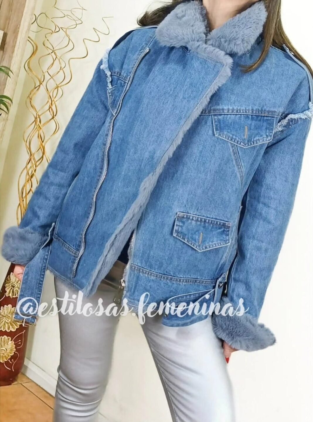 - Piel blanca y Gris (muy suave y delicada), sólo en PUÑOS y CUELLO.