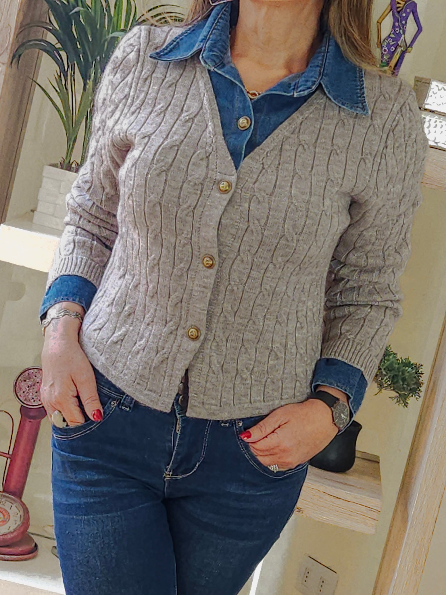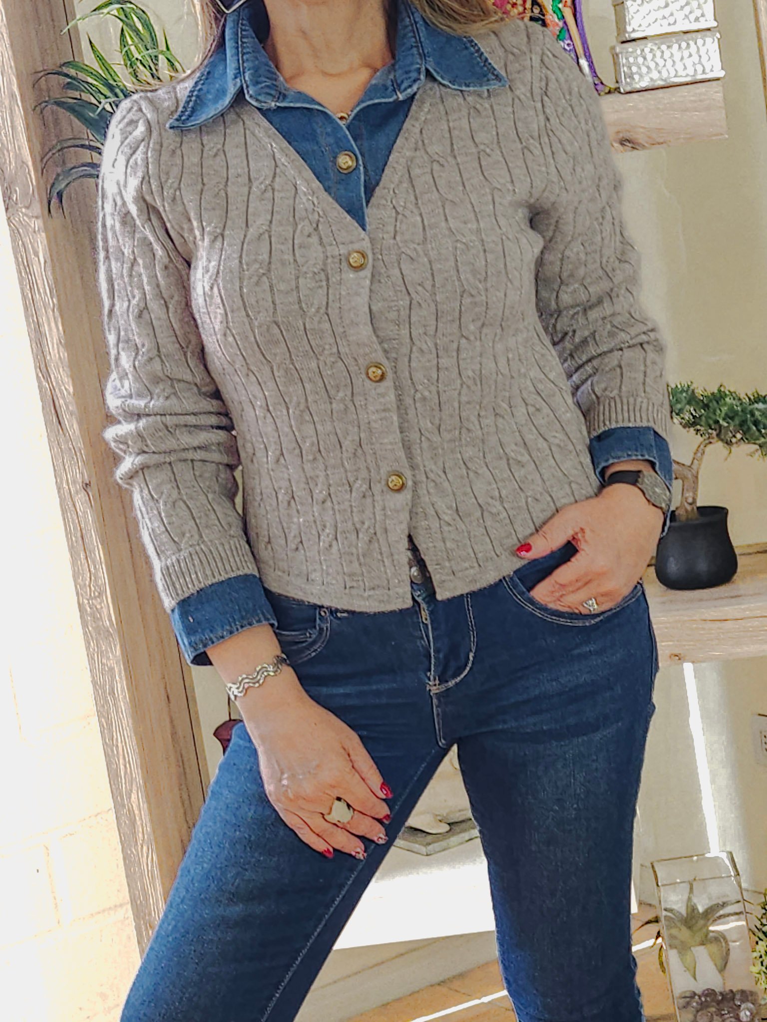 Cuello y Puños de Mezclilla.